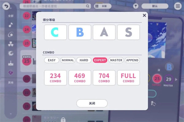 你可以选择综合能力最强的五张角色卡组成队伍进行打歌,当一首歌第一次达到C、B、A、S评级时,都能获取相应数量的水晶,首次达成特定连击数也能得到水晶奖励。EXPERT难度(也就是大家常说的红谱)的歌曲是获取水晶效率最高的——用未挑战过的红谱歌曲达成S级且Full Combo通关,一次就能拿到180水晶,但这需要具备一定的音游操作基础才能做到。