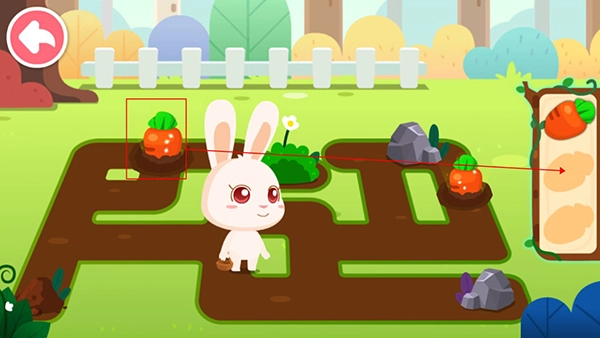 首先,我们要帮小兔子收集萝卜,得操控它走到萝卜旁边,接着点击萝卜就能把它拔出来,把三个萝卜都拔完就能进入下一个环节啦!
