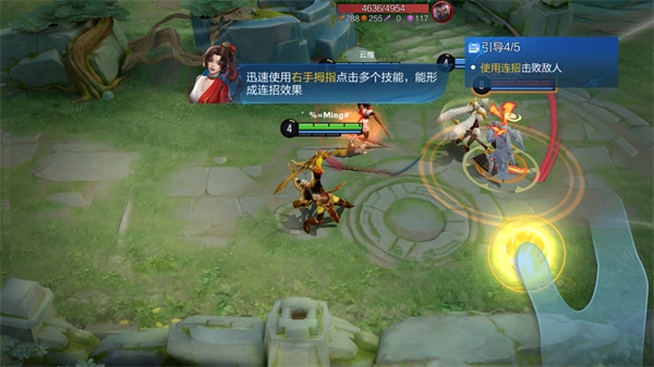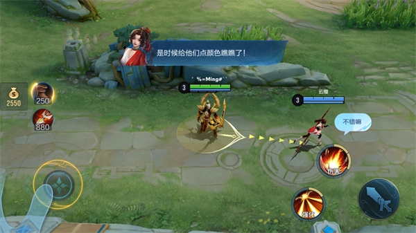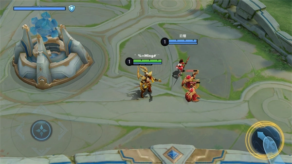 选择完毕后,进入峡谷地图,根据提示,借助左下角的虚拟摇杆,即可操控英雄灵活移动。