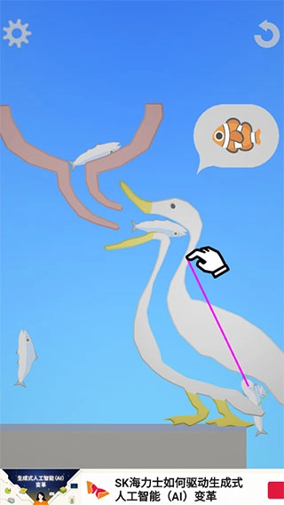 这一关是大鹅吃鱼,画面非常的简洁,内容也很简单