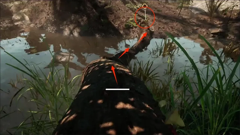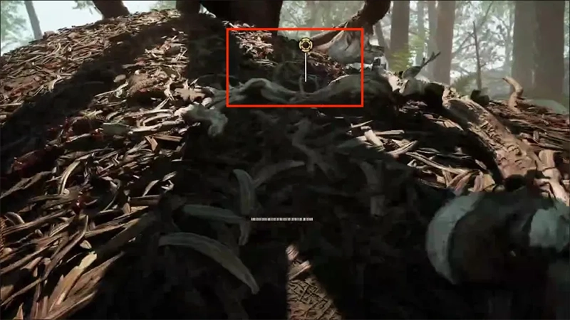 先走到黄标的位置,沿着树干跨过湖泊到达对面。