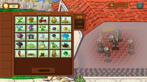 我们进入游戏后,在正式开始前选好自己要用的植物,留意会出现哪些僵尸!