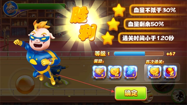 战斗获胜后,点击确认,领取对应的奖励,然后继续挑战新的关卡。