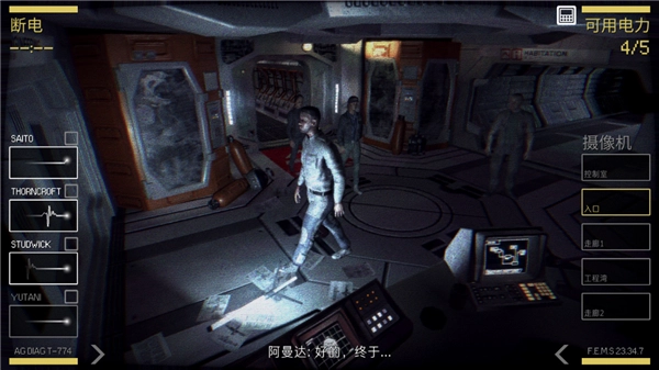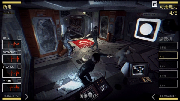 点击查看整个空间站,可查看所有摄像头和控制装置,还能与人员沟通以协助他们开启装置,请注意摄像头的状态。