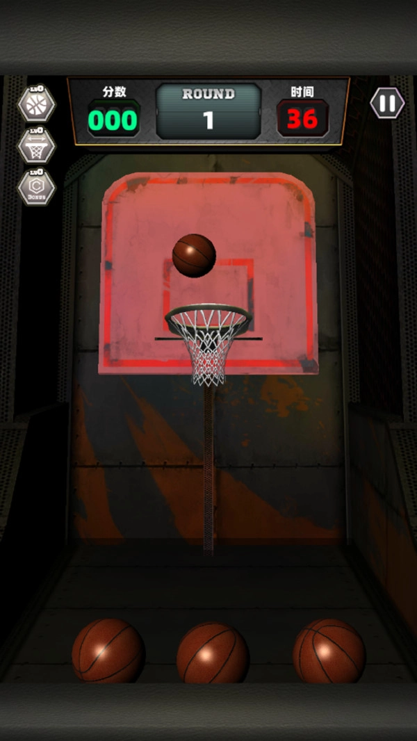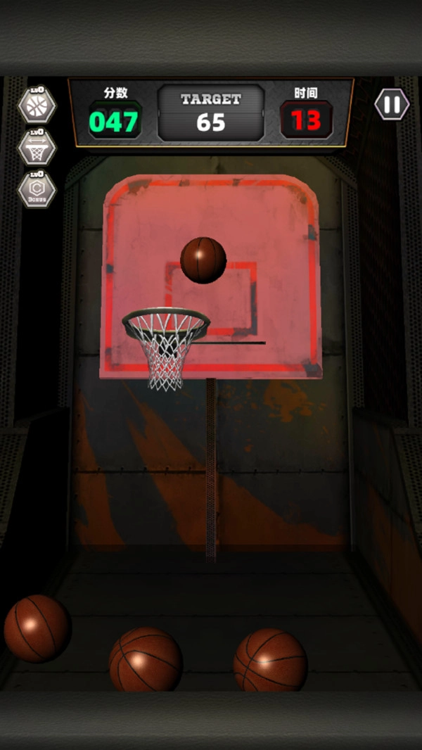玩家拿起篮球投篮时,需把控好投篮力度,让篮球精准入网,以此快速提升挑战分数。