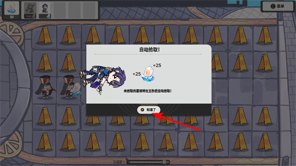 在自动拾取提示界面领取战斗资源,这些资源是战斗中获得的,积累起来可以用于角色升级、技能解锁等,从而提升战力。