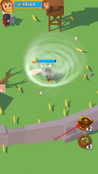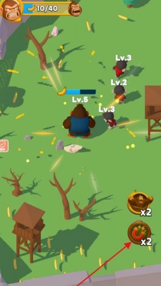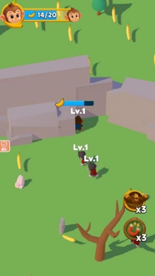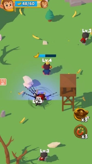 玩家需要持续击败战场上的中立生物与对手,积累足够多的香蕉,促使宠物迅速提升等级。