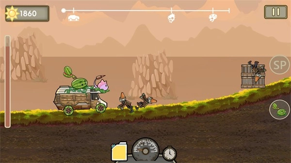 驾驶你的专属植物战车挑战关卡,消灭沿途遇到的每一只僵尸。