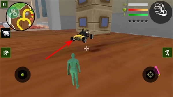 靠近那辆黄色越野车,驾驶它快速移动。车辆是提升移动效率、探索大范围地图的重要工具,合理利用能节省时间。