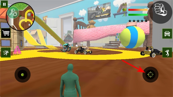 点击右侧的瞄准按钮,能够触发攻击或交互功能,当遇到敌人或者需要进行互动时使用该按钮,有助于完成战斗或任务目标。