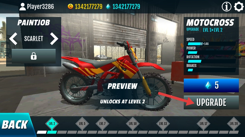 对摩托车进行升级改造,提升其速度、力量等各项属性,以此增强摩托车的整体性能,从而能够更出色地应对赛道上的各种挑战。