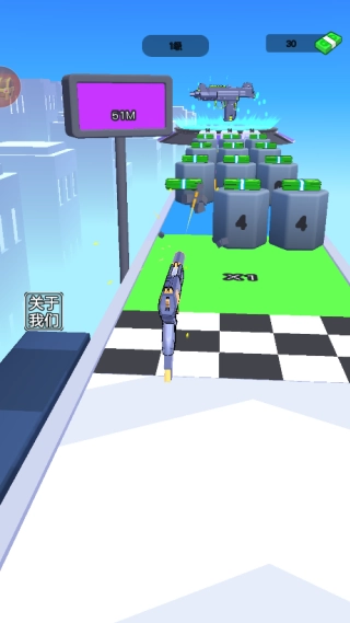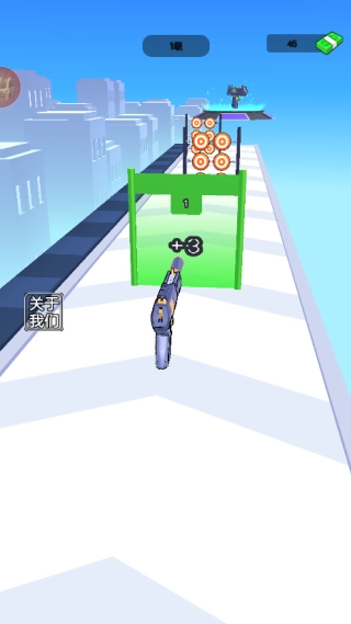 进入挑战关卡后,通过点击屏幕并左右滑动来操控枪支移动,同时收集沿途出现的各类增益属性道具。