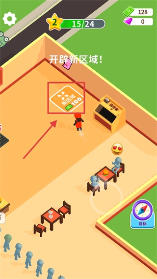 当拥有不少于100绿钞的资金时,即可解锁新区域,以此拓展店铺的经营空间,从而能够容纳更多的顾客并添置更多设施。
