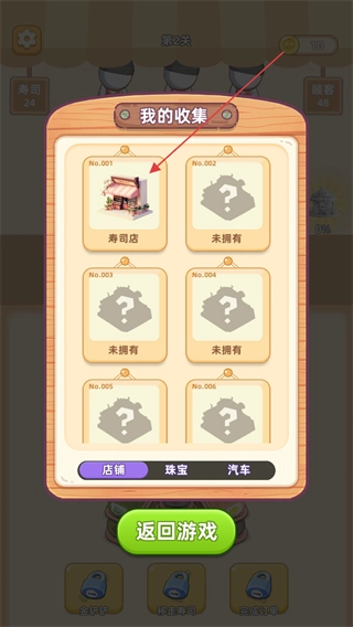 当关卡通关达到一定进度时,就能解锁下一家店铺,在“我的收藏”里可以查看当前已有的店铺。