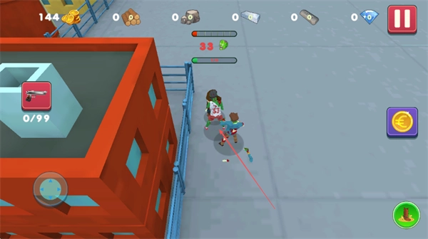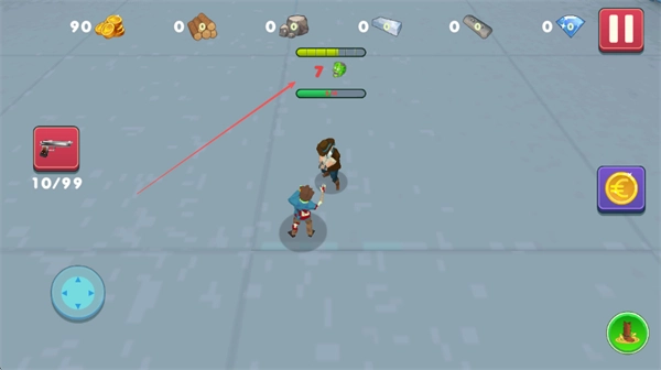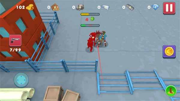 时刻留意上方的血量条,和队友协同作战攻击僵尸,通过收集金币来增强自身的战斗能力。