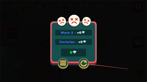 要是战斗没能胜利,就点击右下角的重玩按钮,重新发起关卡挑战,努力通过关卡来获取钻石奖励。