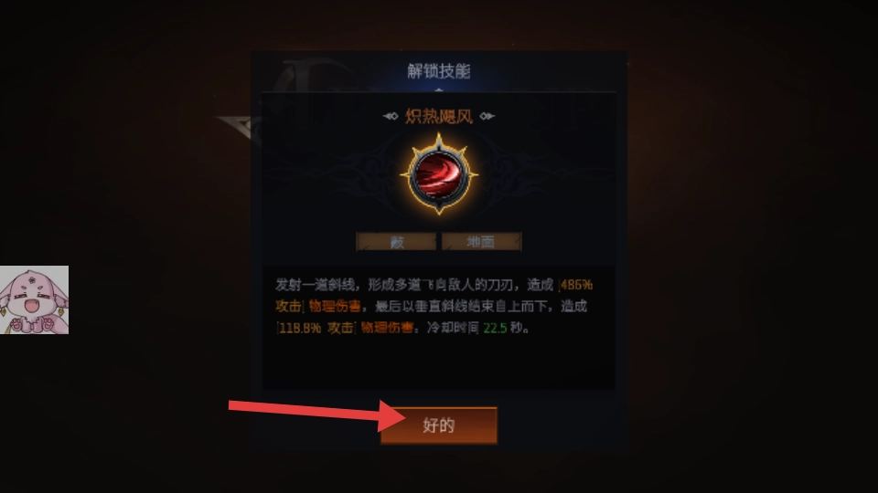 解锁技能后,点击【好的】按钮确认技能,即可提升角色的战斗能力,更高效地消灭敌人。