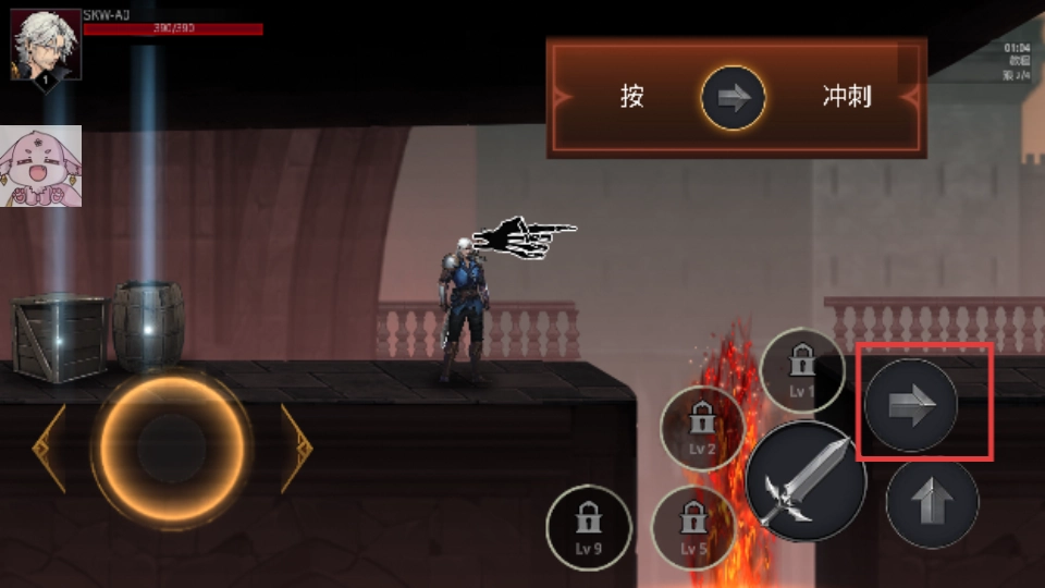 按下冲刺按钮,就能操控角色进行冲刺,实现快速移动,以此来躲避危险或者接近敌人。