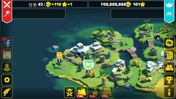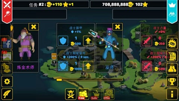 通过战斗胜利获取奖励,收集并升级各类神器与角色技能,提升军队战力来加速征服进程。