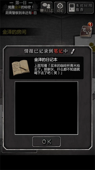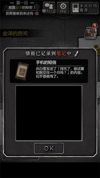 再次回到三楼与金泽交谈,得到“现在能够查看金泽的房间了”的提示。