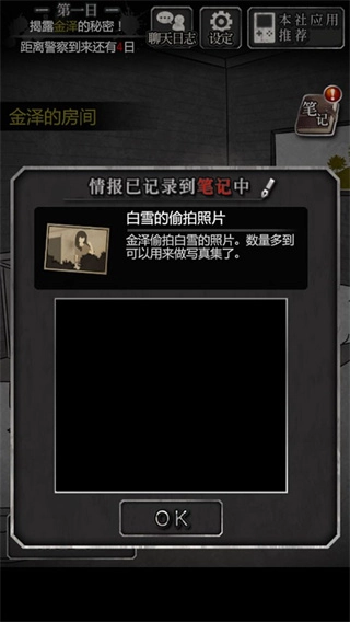 在这段时间里,玩家能够对房间展开调查,并且可以在床上枕头旁边找到“白雪的偷拍相片”。