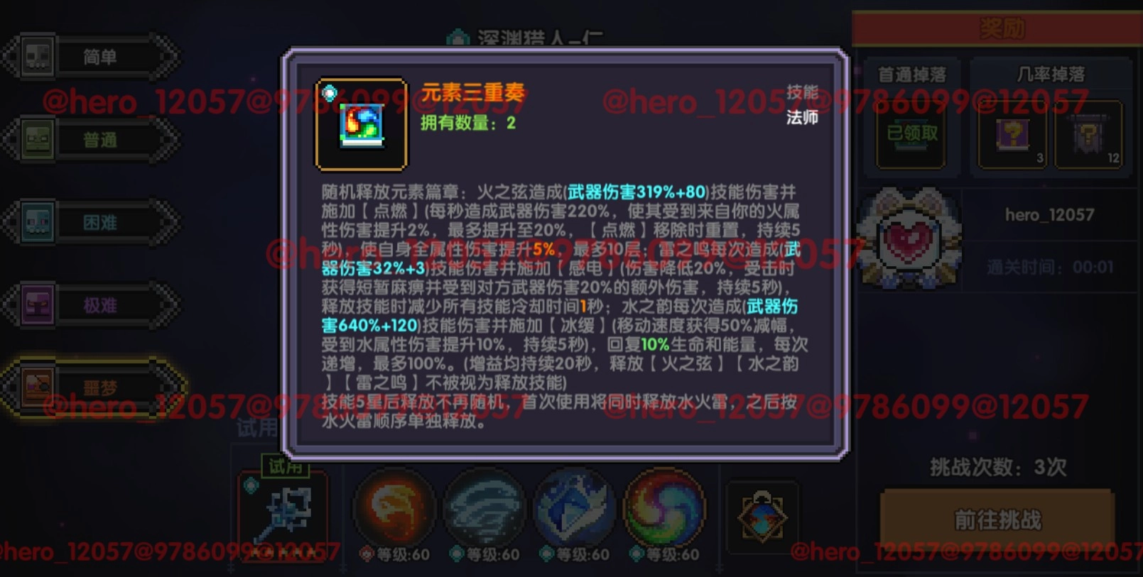 当通关小秘境100层后,可在抗争技能池抽取【春祭】和【山海复苏】,在命运技能池抽取【龙咆虎啸】,在普通技能池抽取【元素之息】与【元素三重奏】;技巧试炼副本能够获取技能及升级材料(其中【元素三重奏】也可通过特定训练关卡获得)。