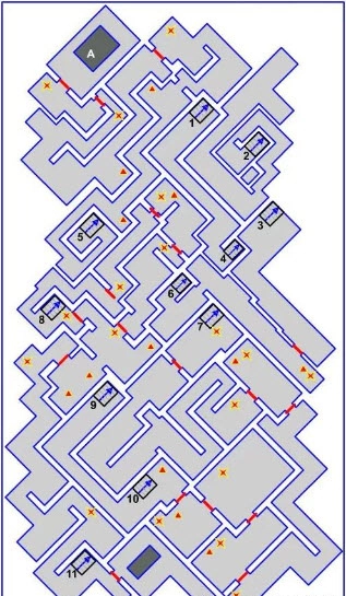 01:走下大楼梯后踏上踏板,先向右,接着向下,遇到岔路继续向下;再遇岔路时选择左行,之后走岔路上行,到达十字路口左转,然后上行,右转后继续上行,左转后遇岔路再上行,左转,最后下楼。