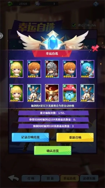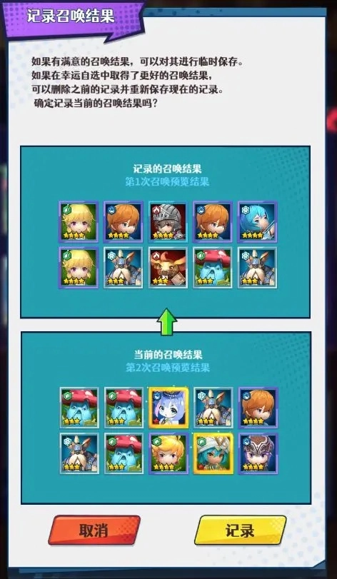 幸运自选本质上相当于进行50次10连召唤,然后从这些召唤结果里选一次最合心意的。具体操作流程是:当抽到想要的角色(暗射、暗骑、光奶、冰法)时,点击记录按钮暂时保存这次结果,接着继续抽卡;要是后续抽到更理想的结果,就再次点击记录,需要注意的是,新的记录会覆盖之前保存的结果。