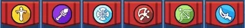 ②职业:如图所示,依次为骑士、法师、牧师(奶妈)、战士、射手(游侠/枪)以及刺客。