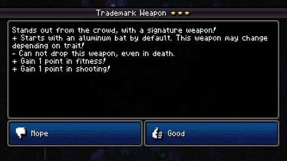 strength:力量,影响玩家近战武器的挥舞速度、可举起家具的重量以及投掷效果。近战角色在后期对力量的需求很高,需要靠它来支撑战斗,但前期则不太需要——主要是因为前期如果没有fitness的支持,就算用近战武器挥舞不了几下,很快就会失去力气和战斗手段。