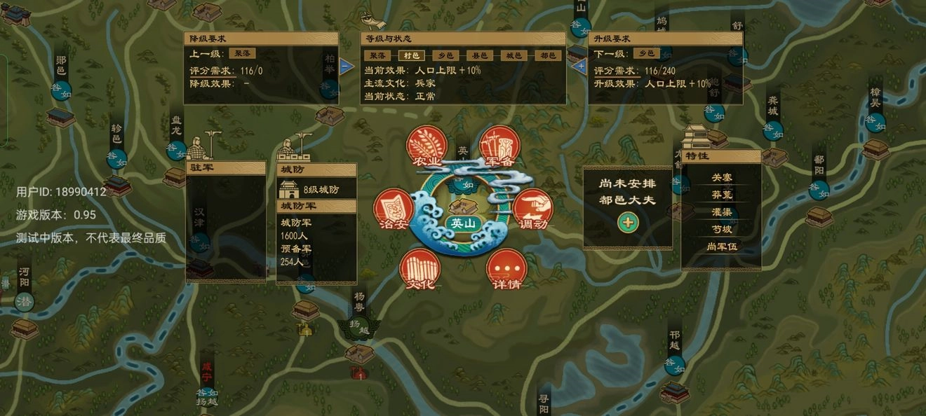 城邑的地形、发展程度与主流文化,会赋予城市各异的特性,君上可依据这些特性来制定针对性的发展策略。