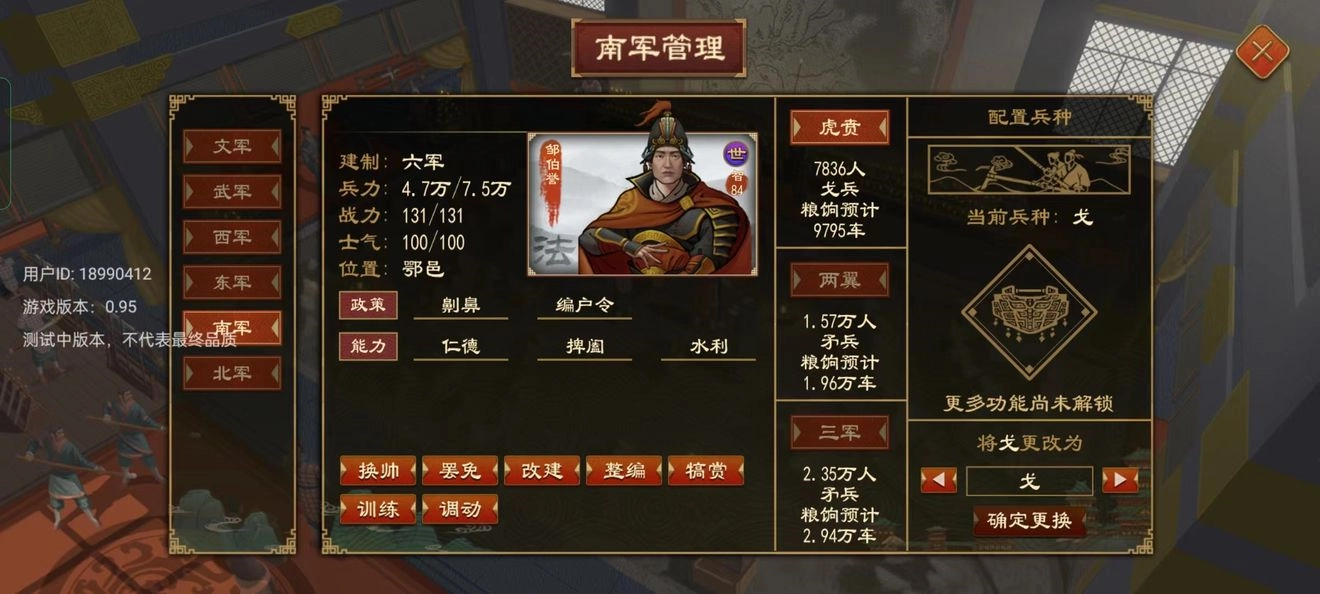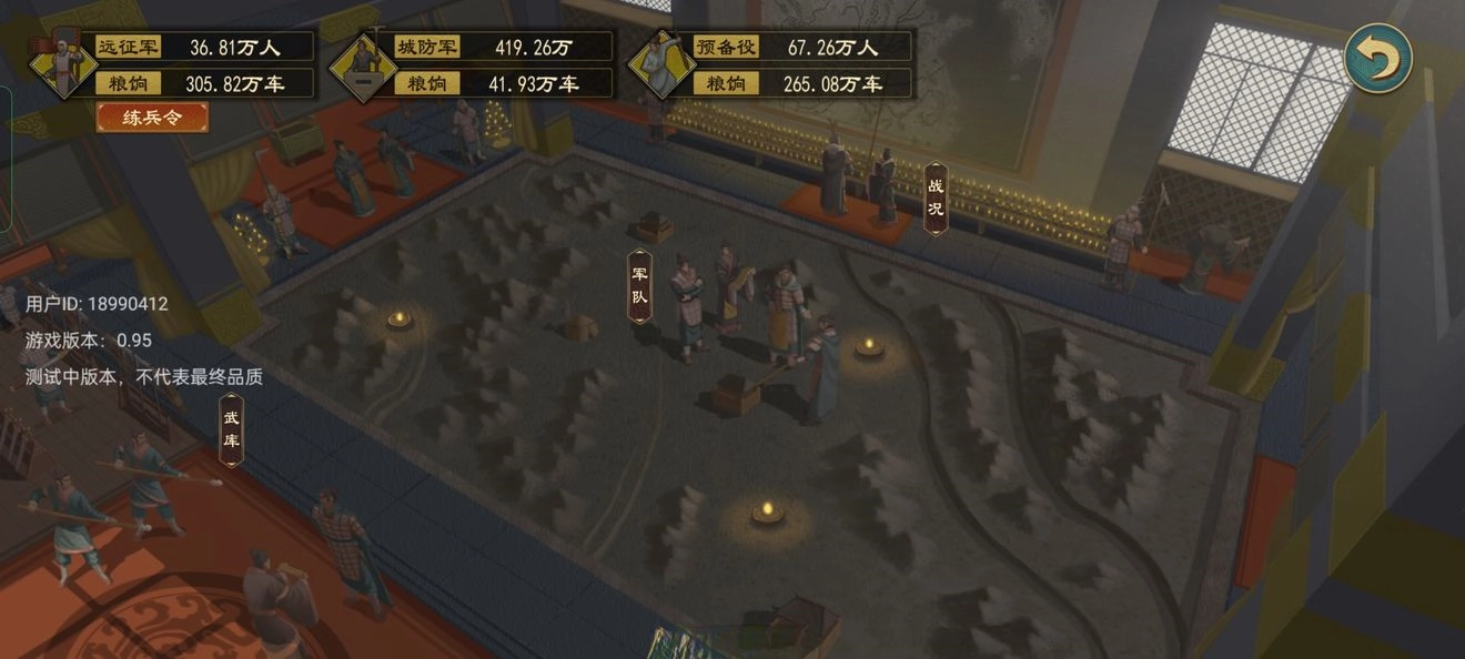 军队质量方面:可将预备役部队合并为单一军种,提升士气时能借助前文提及的徒兵技巧实现快速提振,之后再由兵家对军队展开训练。