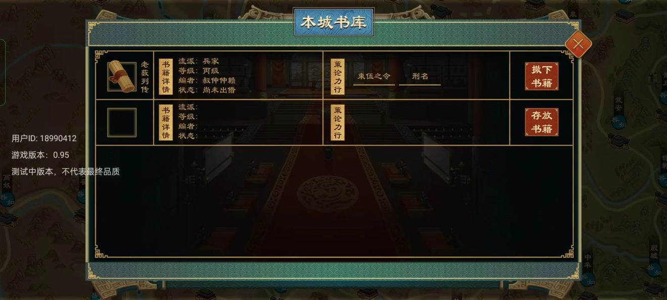 书阁:可供朝臣与门客前来拜读,臣子若拜读成功,即可顺利学习相关政策。需注意的是,拜读者必须与立书者属于同一流派。