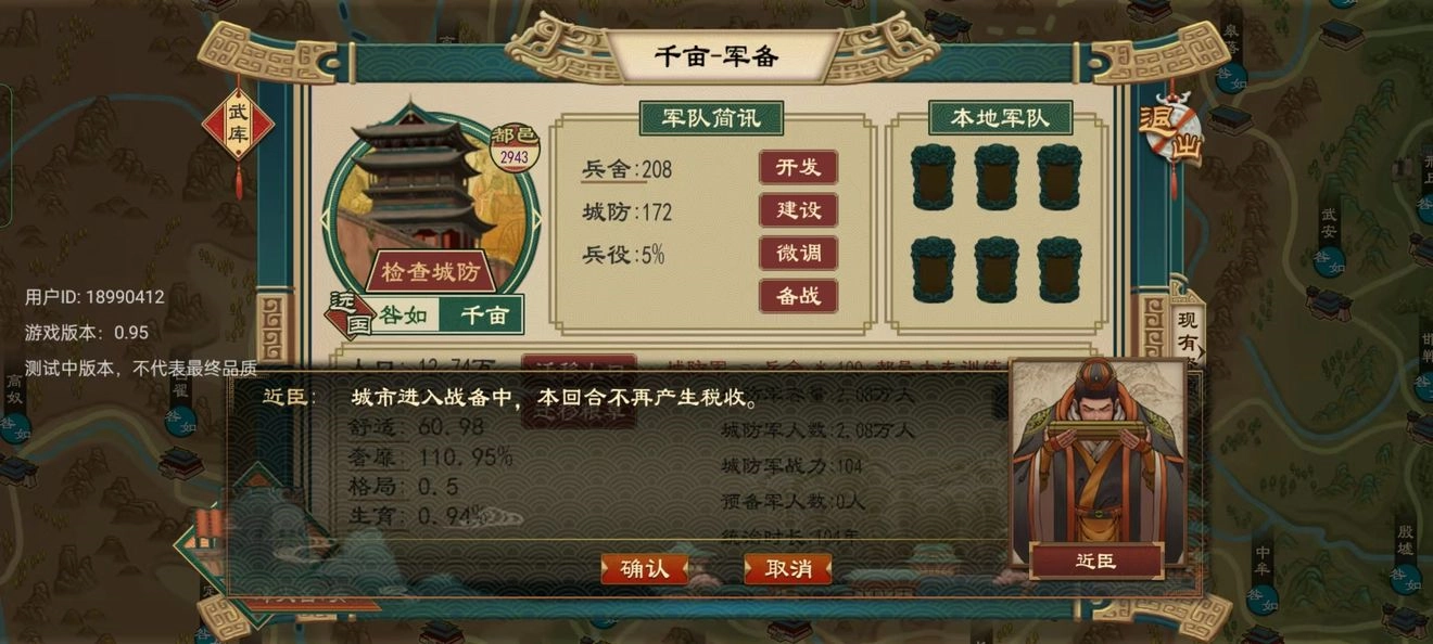 发动战争(尤其是在发动战争后可能面临合纵反击的情况下),建议对可能发生交战的城邑开启备战流程。具体操作步骤为:在地图上定位需要防御的城邑,进入军备界面,选择边疆选项,最后开启备战状态。这一举措能够有效避免城防军在遭遇野战军进攻时出现战力不足的问题。