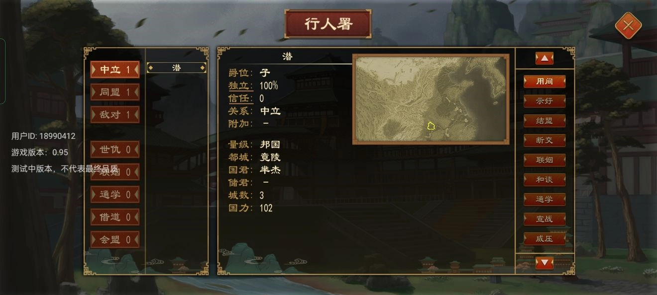 会盟署:是用于开启或参与会盟的场所,在会盟中既能制定条约,也可通过诸侯相王的方式实现升爵。至于更为详细的外交内容,我会专门撰写一篇关于用间的文章来详细阐述。