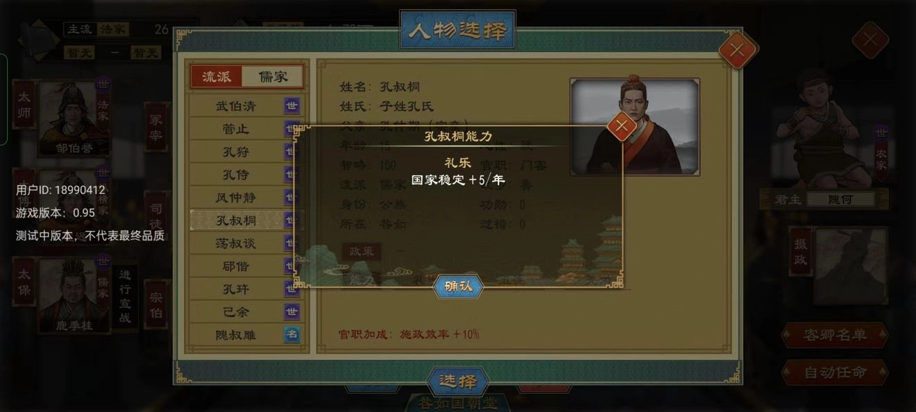 客卿:没有实际官职,无法带来职位加成,但能被委派任务;可依据国家需求灵活选择对应流派的人才担任——比如需要招揽贤才时就任命儒家客卿,需要领军作战时则任用兵家客卿。