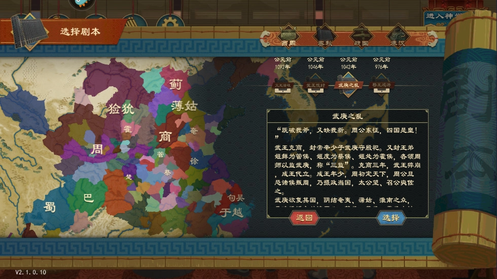 《大周列国志》是一款以中国古代历史为背景的策略战争游戏,在产品定位上与广为人知的《无悔华夏》有相似之处。尽管两者同属历史题材,但它们覆盖的时间线存在明显差异:《大周列国志》聚焦于从武王伐纣起,历经春秋五霸、战国七雄,到秦灭六国、完成大一统的关键历史进程;而《无悔华夏》在叙事维度上则展现出更大的格局,其长远目标是构建一幅涵盖整个中国古代历史的全景画卷。