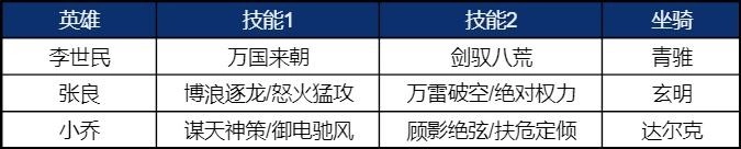 ◆ 李世民枪剑组合:李世民阵容里的性价比天花板,奖池抽取后就能直接成型,阵容强度也相当不错,不管是开荒、野战还是集结作战都能轻松应对。