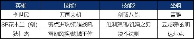 SP花木兰搭配胜利怒吼技能,能够加快李世民主将技的触发节奏,而李世民的主将技又能联动花木兰的主将技,为整个阵容增添额外的减伤效果。这套阵容组合不仅具备剑枪双形态的适配性,花木兰还可携带两个主动技能,再结合狄仁杰的被动机制,能进一步提升队伍整体的回复能力与生存坦度。
