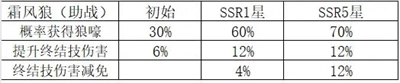 霜风狼的助战适配性极高,几乎能融入所有阵容体系,70%的触发概率也相当稳定。它在进化为SSR品质前,各项数值的提升幅度比较明显,但进化后数值增长就相对平缓了,因此推荐将其培养至SSR1星阶段。