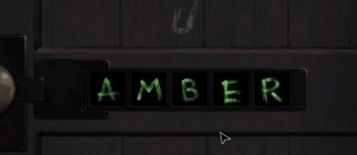 在木门上输入女孩儿的名字AMBER,打开木门。