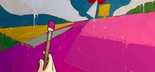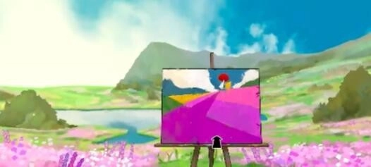 在一片绚烂的花海之中,能看到一幅以紫色为主色调的画作,点击这幅紫色画作就能获取紫色颜料,之后再返回最初所在的场景即可。