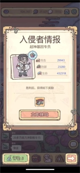 基因研究功能的激活,需要先解锁首个特殊形态(通常为丧尸形态),再完成超神基因专员的拜访事件。一旦激活,通过基因研究能够获取多种加成,涵盖五维属性(人气、文化、信仰、科技、艺术的统称)与四维属性(攻击、防御、血量、追击)的提升,此外还有各阶段的特殊研究,可获得对应形态的专属加成。