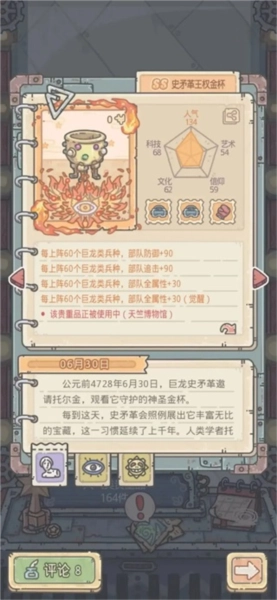 它和金羊毛形成共鸣1:每积累400点文明值,蜗牛的防御就增加3点,当前数值为0/10000。