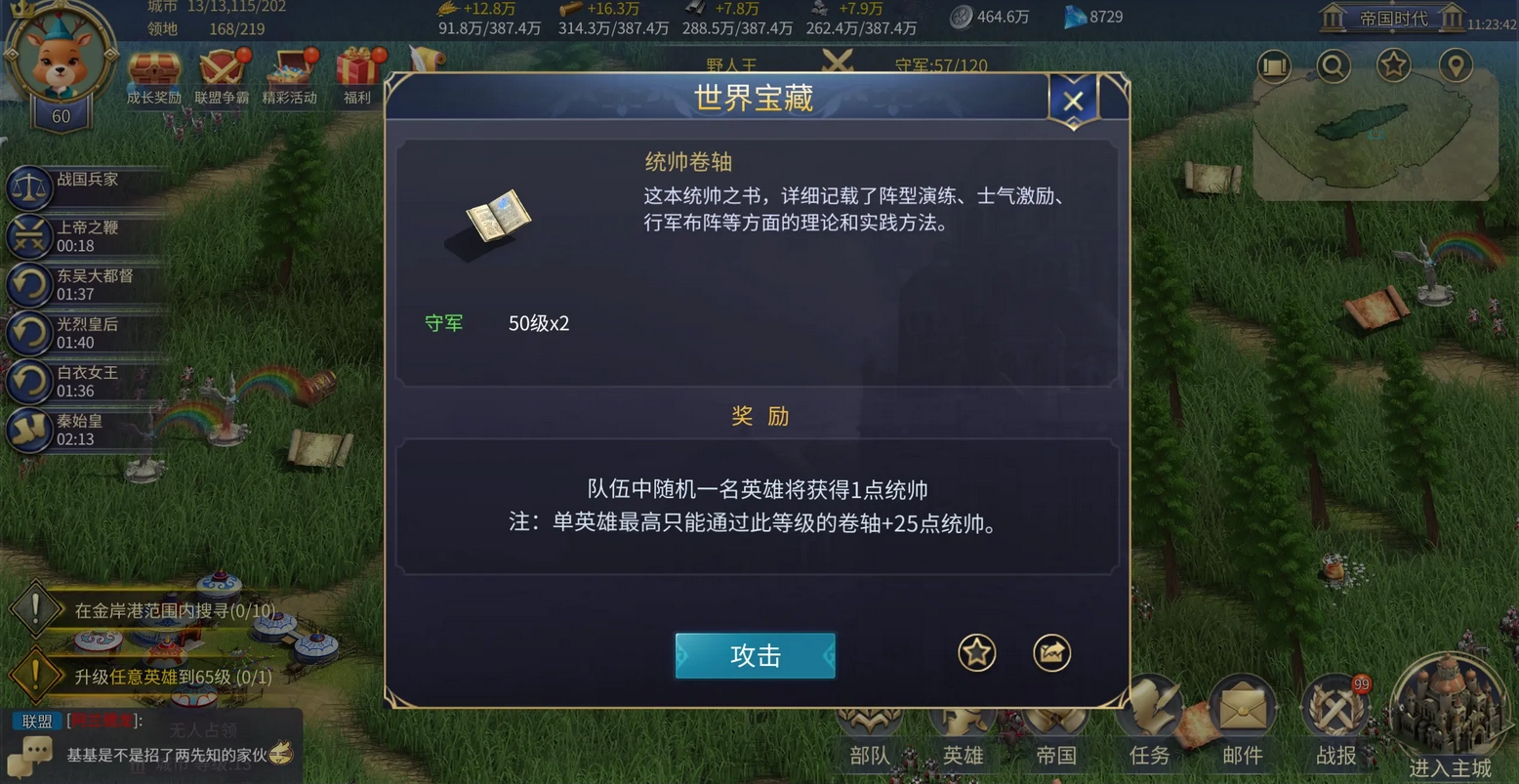 有些部队天生就不适合打野,就拿骑兵队来说吧(策划大大真的该救救骑兵了,从18年到现在,整整七年都没强过,人生能有几个七年啊?),硬逼着它们去刷怪练级,结果只能是损兵折将、碰得头破血流,英雄经验没涨多少,兵力和资源倒是先耗了个精光。对这类部队而言,选择演练反而是更合适的办法。