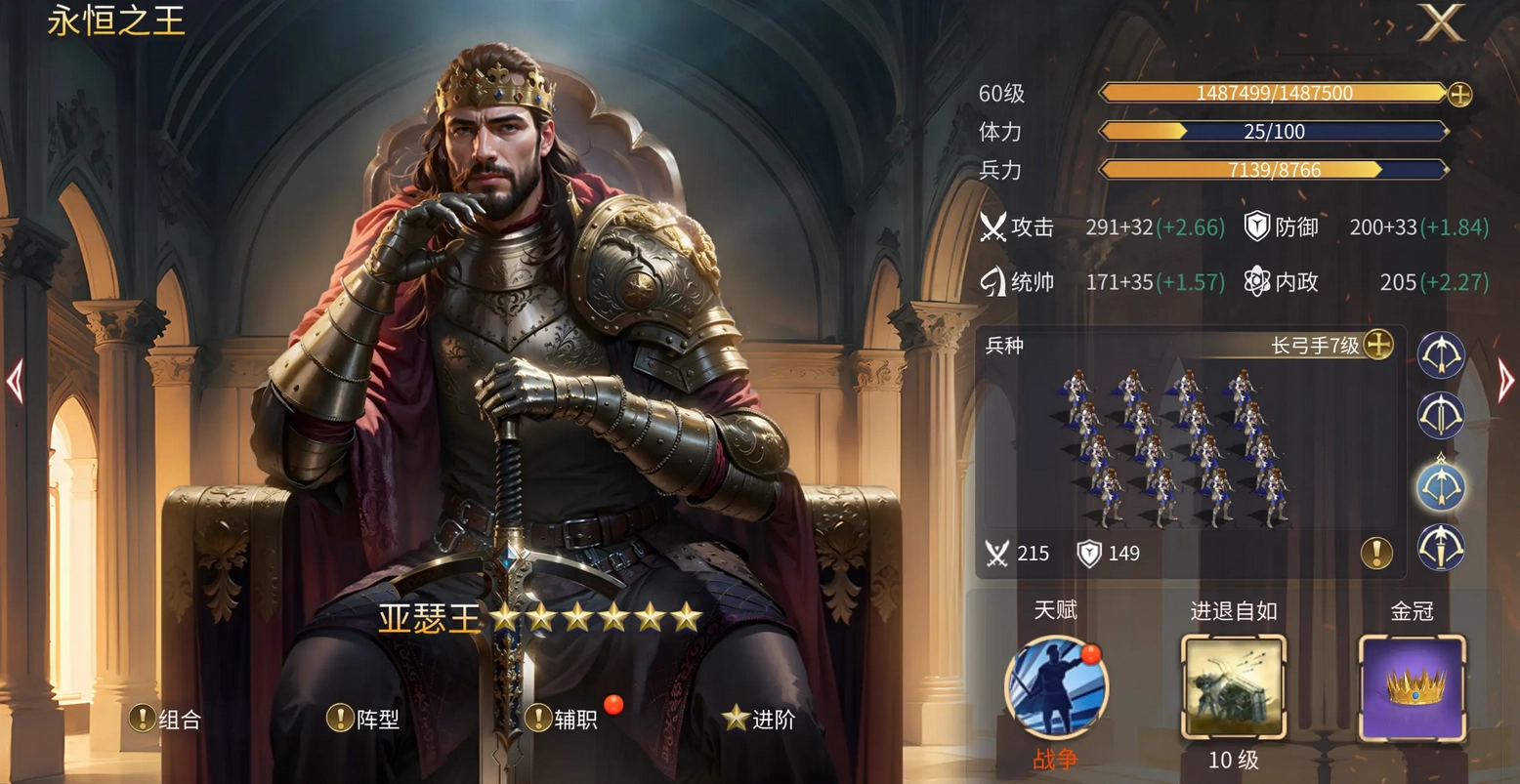 拿我的永恒之王来说,合区前兵种等级才三级。不是我缺资源,而是早有规划,等合区后第一时间升级兵种,没一会儿我就把长弓升到七级了。