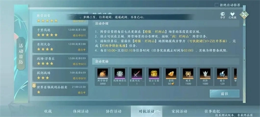 其中阵营日常、千里伐逐与战场均属于阵营任务,在这些活动里,浩气盟和恶人谷两大阵营的玩家需展开对抗。若你想参与,首先得选择加入浩气盟或恶人谷中的一方,之后才能接取相关任务。