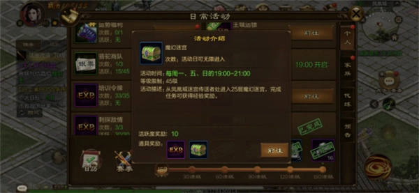 每周一、周五和周日的19:00至21:00期间,玩家可打开“日常”界面,直接找到“魔幻迷宫”入口进入。进入后开启自动寻路功能,找到NPC“迷宫传送者”,即可轻松接取任务。