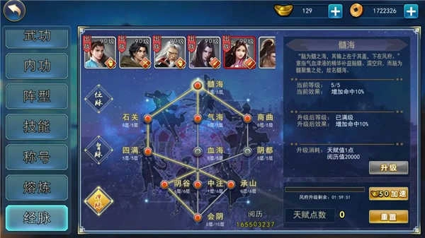 髓海:每点提升2%命中,可提升5点,总计最多增加10%命中(每提升一点需消耗20000阅历)