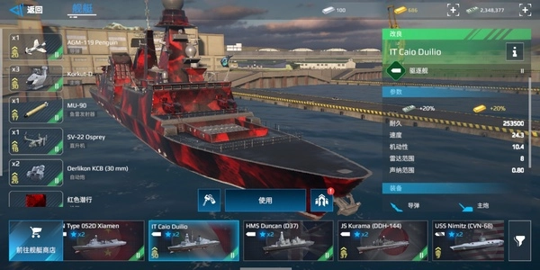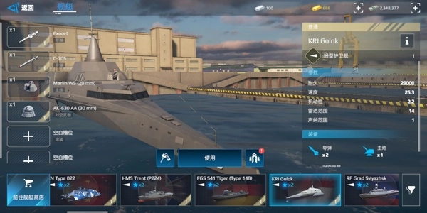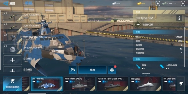 022凭借着逆天的体型与速度,再加上2导弹2火箭炮的配置,表现相当出众。它不仅是少有的出生就自带皮肤的舰船,更是唯一能搭载一级火箭炮的存在。不过,它的血量偏低,很容易被击毁,因此不太适合萌新,需要一定的操作水平才能驾驭。
